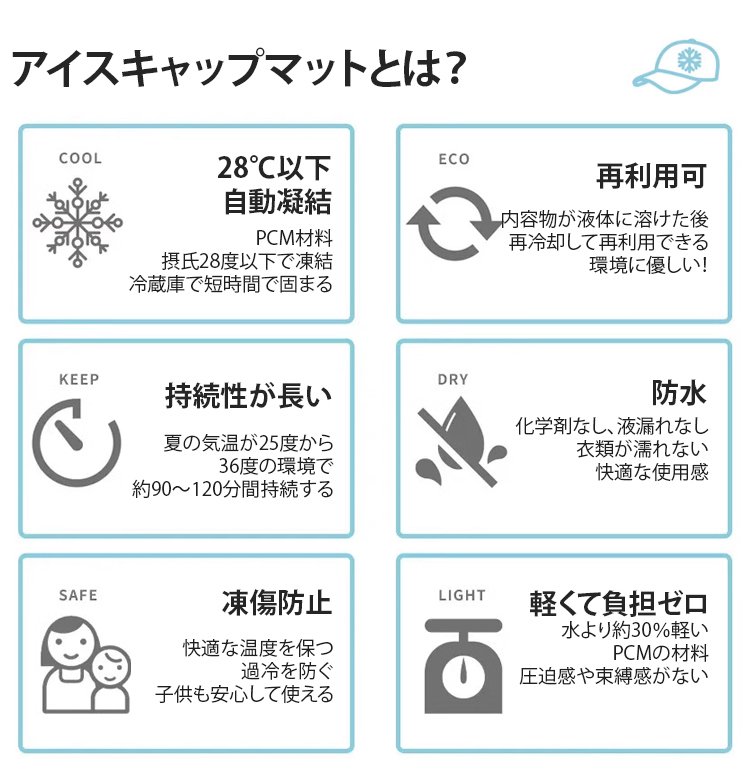 【超クール】帽子に入れて使うPCMアイスキャップマット