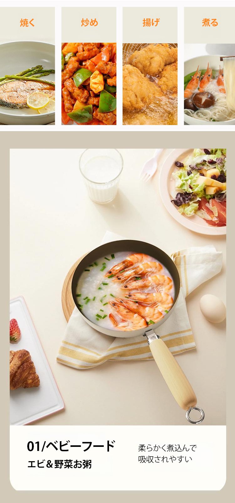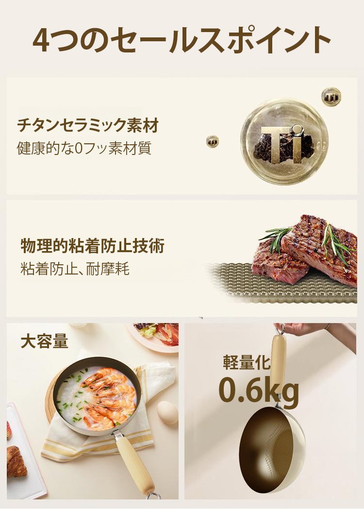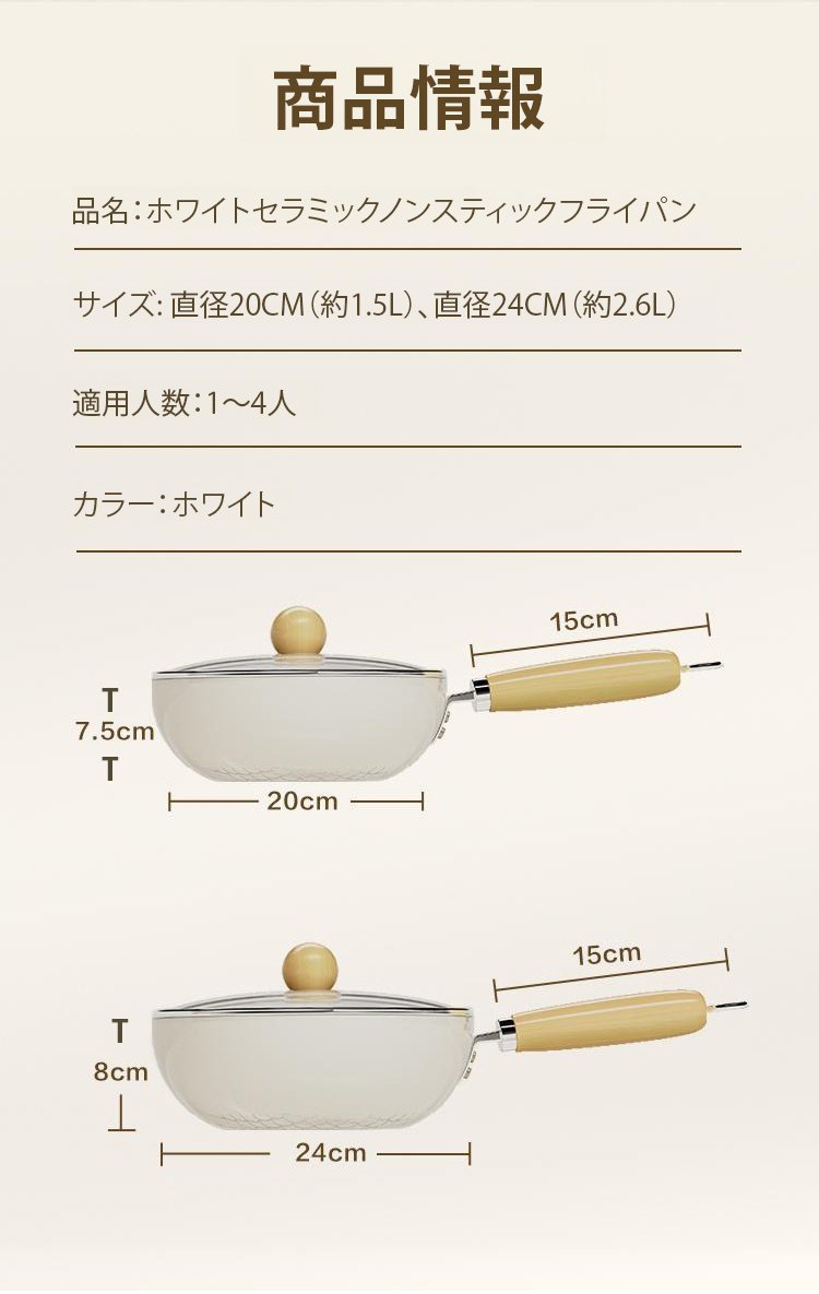 ホワイトセラミックノンスティックフライパン