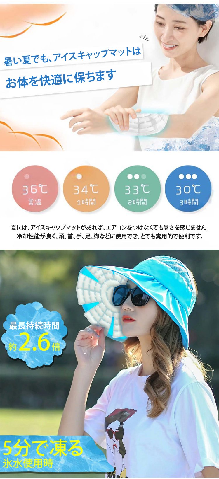 【超クール】帽子に入れて使うPCMアイスキャップマット